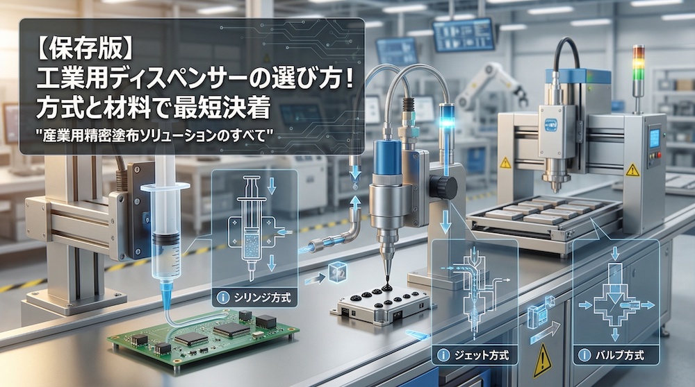 「工業用ディスペンサーを導入したいが、種類が多すぎてどれを選べばいいか分からない」「高価な設備だからこそ、導入で失敗したくない」